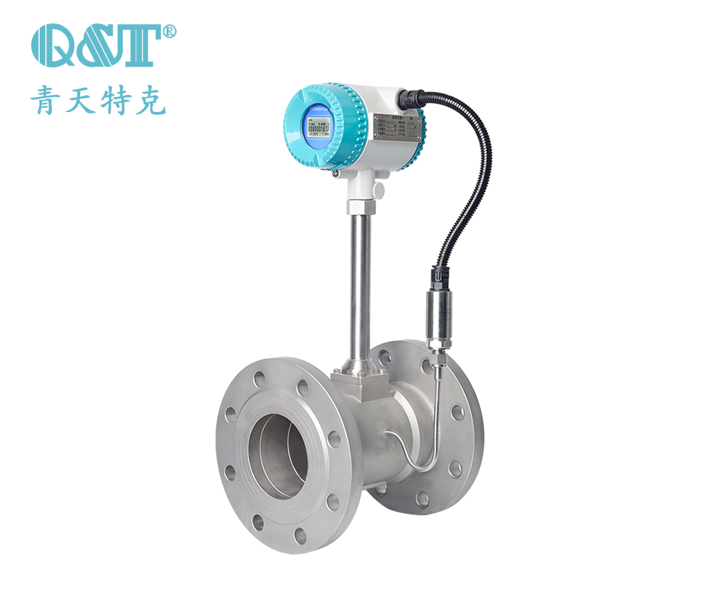 這種形式對比實用于不存在比較大溫度壓力改變的場所下。渦街流量計傳感器中,若帶有溫度檢測元件以及內(nèi)置壓力的狀況下,儀表遵照所測得的溫度以及壓力的后果加以斟酌,控制住蒸汽的狀況,判定好蒸汽是過熱蒸汽、飽和蒸氣的哪1品種型。針對于質(zhì)量流量,計算的方法得獲得儀表里貯存的蒸汽數(shù)據(jù)庫的指標(biāo)、實行智能化計算;另外就是應(yīng)用蒸汽流量積算儀,在蒸汽流量積算儀中,傳輸渦街流量計計量的工況體積流量,溫度,以及進行傳送壓力變送器測量得到的信號。蒸汽流量積算儀內(nèi)置的過熱蒸汽以及飽和蒸汽彌補算法,可以正確的輸出質(zhì)量流量以及規(guī)范體積流量,而且也可以把熱量還有比焓等進行正確的輸出。